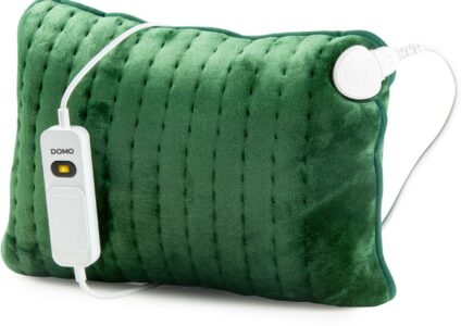 Das Wärmekissen von DOMO eignet sich für alle Körperpartien: von Rücken, Nacken und Schultern bis hin zu Bauch, Beinen, Armen usw. Die Wärme regt die Blutzirkulation an und lindert Schmerzen oder macht einen kalten Winterabend auf der Couch einfach urgemütlich. Sie können das Kabel und die Füllung herausnehmen und den Kissenbezug dadurch mühelos reinigen. Der dunkelgrüne Stoff besteht aus Flanell-Fleece und ist superweich. Der Schalter bietet 3 Wärmestufen. Haben Sie vergessen, das Kissen auszuschalten?…