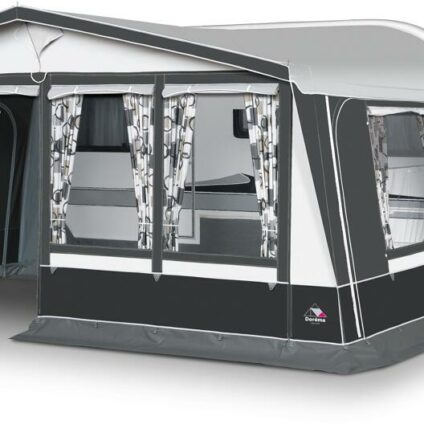Speziell für Dauercamper ist das Bergamo De Luxe mit festen Fensterklappen. Die Fensterklappen schützen vor neugierigen Blicken, vor zu viel Sonneneinstrahlung auf die Fensterfolien und bieten extra Sicherheit während Ihrer Abwesenheit.Das Dach ist gefertigt aus beidseitig PVC beschichtetem Polyestergewebe, die Seitenwände sind gefertigt aus Ten Cate All Season-Zeltgewebe. Durch doppelte Ankerhaken kann der Faulstreifen sowohl nach der Innenseite, als auch nach der Außenseite gelegt…