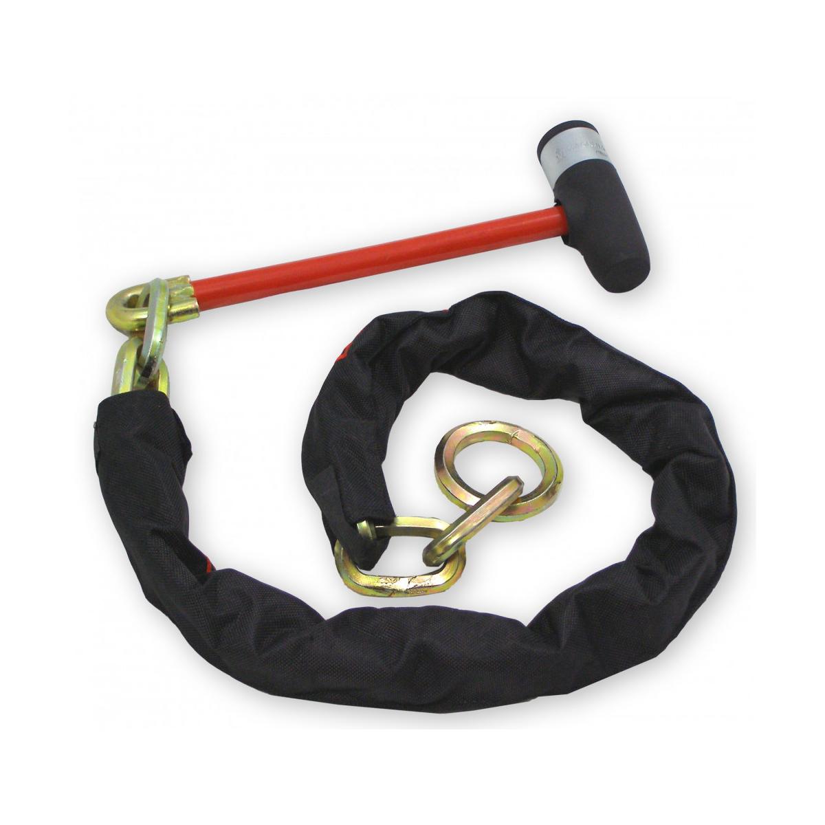 Robuste Kette mit Stangenschloss. Einzigartige schlingbare Kette mit Stab: Ø18 mm. Fünf Schlüssel einschließlich LED-Schlüssel. Ausgestattet mit einer Schutzhülle, um Schäden an Ihrer Felge zu vermeiden. Sowohl für Stahl- als auch für Aluminiumfelgen geeignet. Wird in einem schwarzen Etui geliefert. SCM-geprüft. SCM-Nummer MP030601. Multifunktionelle Diebstahlschutz-Kette Einzigartige Kette (durchs letzte Glied durchziehbar) mit Stift: Ø 18 mm Fünf Schlüssel inklusive LED Schlüssel Schutzhülle gegen…