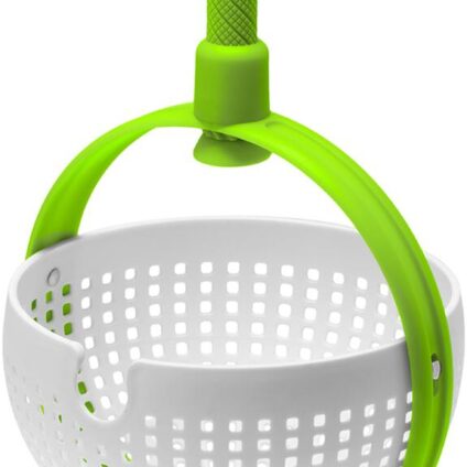 Spina ist ein Sieb, das sich in eine Salatschleuder verwandelt. Spina ist Salatschleuder, Sieb und Sieb in einem, perfekt zum Schleudern von Salaten, Gemüse, Beeren, Trauben, Nudeln und mehr. Der Korb mit großem Fassungsvermögen (3 Liter / 12 Tassen) hat überhängende Seiten, um Lebensmittel darin zu halten und zu verhindern, dass sie sich herausdrehen. Rutschfeste Fußdrehpunkte für sicheres Schleudern mit hoher Drehzahl für schnelles Trocknen in Ihrer Spüle. Der Griff lässt sich für die…