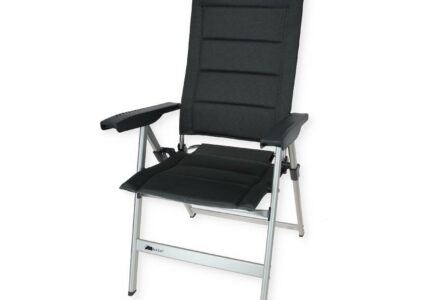 Gepolsterter Stuhl mit einem ultra starken, witterungsbeständigen 3D Mesh Gewebe. Die Rückenlehne ist ergonomisch geformt und 10-fach verstellbar. Gestell aus Aluminium, innen verstärktes anodisiertes Oval–Rohr. Armlehnen extra breit und aus glasfaserverstärktem Nylon. Die verlängerte Rückenlehne sorgt für noch mehr Komfort! Technische Daten Gewicht: 4,8 kg Maße (B x T x H): 61 x 44 x 130 cm Sitzhöhe: 50 cm Material Bezug: 100 % PES Polyester Material Gestell: Aluminium Max. Belastbarkeit: 140 kg Farbe:…