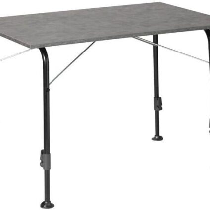 Ultraleichter Tisch mit wasserfester Tischplatte. Steht standfest auf jedem Untergrund und ist stufenlos verstellbar. Technische Daten: Farbe Gestell: schwarz Traglast: 50 kg Material Tischplatte: Holz Gestell: Aluminium Maße: 115 x 57 – 76 x 70 cm (B x H x T) Packmaß: 115 x 70 x 5 cm (B x H x T). Gewicht: 8 kg