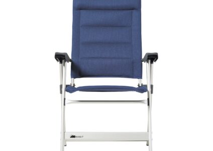 Gepolsterter Stuhl mit einem ultra starken, witterungsbeständigen 3D Mesh Gewebe. Die Rückenlehne ist ergonomisch geformt und 10-fach verstellbar. Gestell aus Aluminium, innen verstärktes anodisiertes Oval Rohr. Armlehnen extra breit und aus glasfaserverstärktem Nylon. witterungsbeständig 10-fach verstellbare Rückenlehne Technische Daten: Material: 100 % PES Polyester Material Gestell: Aluminium Material Armlehnen: Nylon Belastbarkeit: 140 kg Farbe: blau Sitzhöhe: 45 cm Maße (B x T x H): 61 x 44 x 122…