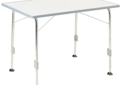 Jeder Fuß ist separat schnell und einfach höhenverstellbar. Damit steht der Tisch auch auf unebenem Untergrund sicher und wackelfrei. Der Tisch ist leicht zu reinigen, nässebeständig und wetterfest. Technische Daten: Farbe: hellgrau Material: Metallgestell Tischfläche: Sevelit Höhenverstellbar: 57 – 74 cm Belastbarkeit: max. 50 kg Abmessungen (L x B x H): 100 x 68 x 56 / 74 cm Packmaß: 100 x 68 x 10 cm Gewicht: ca. 9 kg