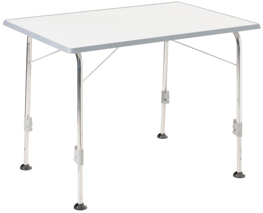 Jeder Fuß ist separat schnell und einfach höhenverstellbar. Damit steht der Tisch auch auf unebenem Untergrund sicher und wackelfrei. Der Tisch ist leicht zu reinigen, nässebeständig und wetterfest. Technische Daten: Farbe: hellgrau Material: Metallgestell Tischfläche: Sevelit Höhenverstellbar: 57 – 74 cm Belastbarkeit: max. 50 kg Abmessungen (L x B x H): 100 x 68 x 56 / 74 cm Packmaß: 100 x 68 x 10 cm Gewicht: ca. 9 kg