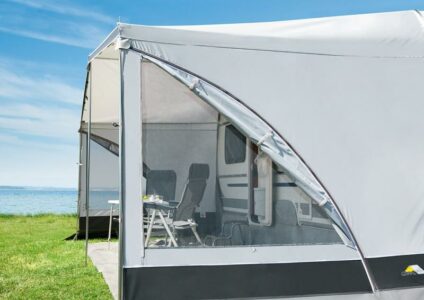 Abnehmbar durch austauschbare Reißverschlüsse. In den Farben blau oder grau mit Folienfenster, oder „Fresh“ mit Moskitogaze und Fensterklappe. Wird empfohlen bei Einsatz einer Vorderwand zur Optimierung der Querlüftung/-ventilation. Lieferumfang: 1 x Seitenwand-Satz
