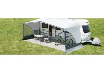 Das Sonnendach sorgt für Schatten.Farbig passendeSeitenwände bestellen Sie einfach dazu und haben so einen Windschutz. Basismodul: Einfaches und effektives Sonnendach, das mit Seitenteilen (gegen Aufpreis) und einer Vorderwand (gegen Aufpreis) komplettiert werden kann. Umlaufmaß: Gr. 14 941-970 cm Gewicht: 7,4 kg Dachtiefe: ca. 240 cm Material: Dach, Vorderwand und Seitenwände aus trailtex-Gewebe, einseitig beschichtet, Fenster aus hochwertiger Folie mit hoher UV-Stabilität. Dach: ohne Naht, mit…