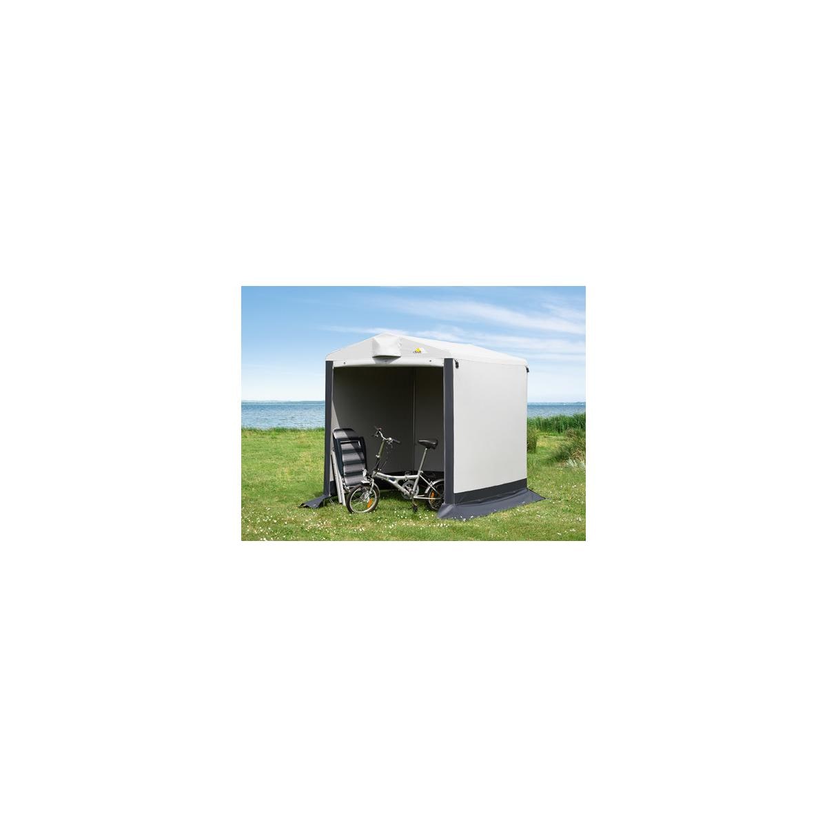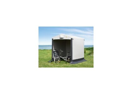 Besonders robuste, strapazierfähige und beidseitig beschichtete/abwaschbare Polyestergewebe werden für dieses Gerätezelt verarbeitet. Vorderwand mit hochrollbarem Eingang, in Vorder- und Rückwand eine abgedeckte Giebelhochentlüftung An den Dachecken Vorbereitungen zur Anbringung von Sicherheitsgurten, geöster Erdstreifen. Technische Daten: Maße: 170 x 205 / 205 / 180 Material: beidseitig PVC-beschichtetes Polyestergewebe, abwaschbar Gestänge: 25 x 1 mm Stahl