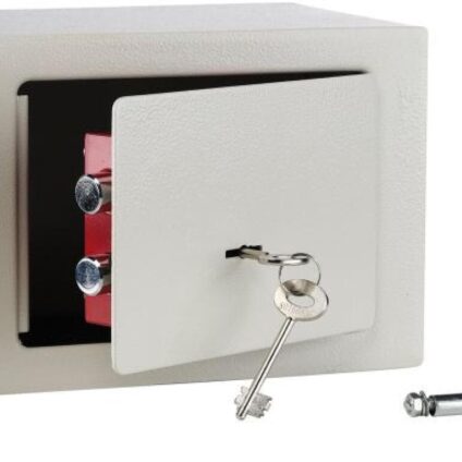 Weißer Safe mit 2 Schlüsseln, Tür- und Wanddicke 3/1 mm, Befestigung an Wand und Boden möglich. Technische Daten: Material: Metall Breite: 23 cm Höhe: 17 cm Tiefe: 17 cm Nettogewicht: 12,5 kg Packmaß: 25 x 20 x 20 cm