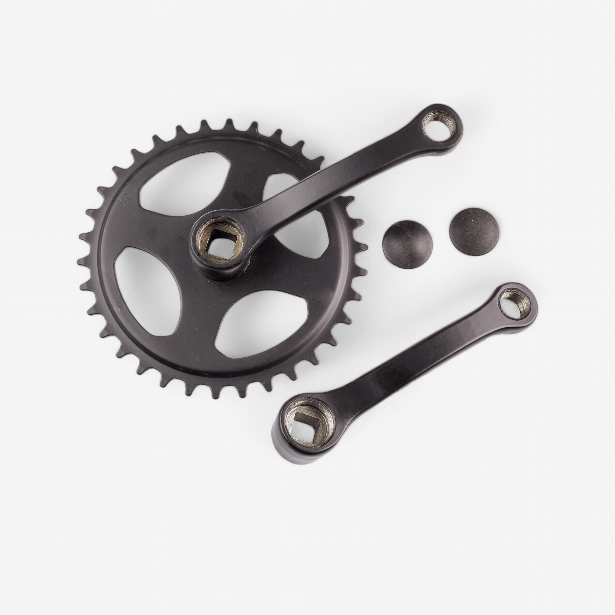 Diese Einfach-Kurbelgarnitur ist mit einem Kettenblatt mit 34 Zähnen und Kurbeln mit 114 mm Durchmesser ausgestattet. Reparatur::Für die Reparatur deines Sportgerätes!|Kompatibilität::Kompatibel mit 16“-Kinderfahrrädern