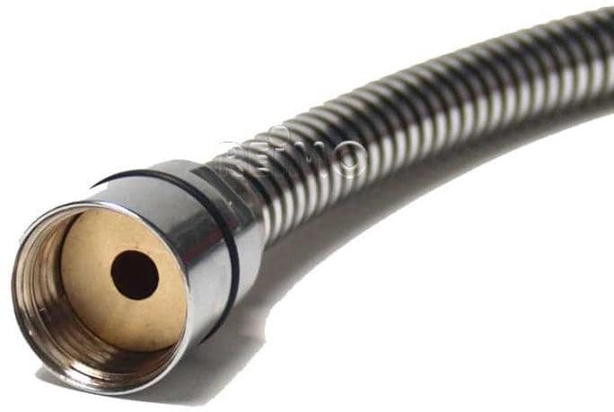 Duschschlauch in Metalloptik. Länge 2,5 m, Überwurfmutter 3/8', x 1/2',.