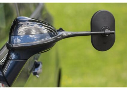 Der Spiegel für den Wohnwagenbetrieb Eine fahrzeugspezifisch entwickelte Halterung aus schwingungsdämpfendem Aluminiumguss ermöglicht einen perfekten, passgenauen Sitz, nahezu ohne Vibration. Alle Teile sindaus korrosionsbeständigen Materialien. Die Halterung besteht aus pulverbeschichtetem Aluminium formschön, sicher und zuverlässig sehr klares, vibrationsfreies Spiegelbild aerodynamischer Spiegelkopf mit großem Sichtfeld blitzschnelle Montage ohne Werkzeug durch Flügelschraube vom Fahrer- und…