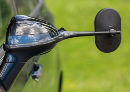 Der Spiegel für den Wohnwagenbetrieb Eine fahrzeugspezifisch entwickelte Halterung aus schwingungsdämpfendem Aluminiumguss ermöglicht einen perfekten, passgenauen Sitz, nahezu ohne Vibration. Alle Teile sindaus korrosionsbeständigen Materialien. Die Halterung besteht aus pulverbeschichtetem Aluminium formschön, sicher und zuverlässig sehr klares, vibrationsfreies Spiegelbild aerodynamischer Spiegelkopf mit großem Sichtfeld blitzschnelle Montage ohne Werkzeug durch Flügelschraube vom Fahrer- und…