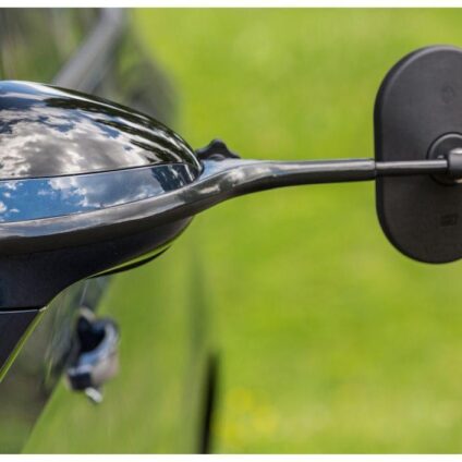 Der Spiegel für den Wohnwagenbetrieb Eine fahrzeugspezifisch entwickelte Halterung aus schwingungsdämpfendem Aluminiumguss ermöglicht einen perfekten, passgenauen Sitz, nahezu ohne Vibration. Alle Teile sindaus korrosionsbeständigen Materialien. Die Halterung besteht aus pulverbeschichtetem Aluminium formschön, sicher und zuverlässig sehr klares, vibrationsfreies Spiegelbild aerodynamischer Spiegelkopf mit großem Sichtfeld blitzschnelle Montage ohne Werkzeug durch Flügelschraube vom Fahrer- und…