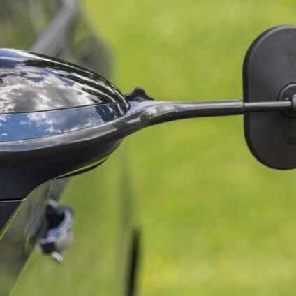 Der Spiegel für den WohnwagenbetriebEine fahrzeugspezifisch entwickelte Halterung aus schwingungsdämpfendem Aluminiumguss ermöglicht einen perfekten, passgenauen Sitz, nahezu ohne Vibration.Alle Teile sindaus korrosionsbeständigen Materialien. Die Halterung besteht aus pulverbeschichtetem Aluminiumformschön, sicher und zuverlässigsehr klares, vibrationsfreies Spiegelbildaerodynamischer Spiegelkopf mit großem Sichtfeldblitzschnelle Montage ohne Werkzeug durch Flügelschraubevom Fahrer- und Beifahrersitz…
