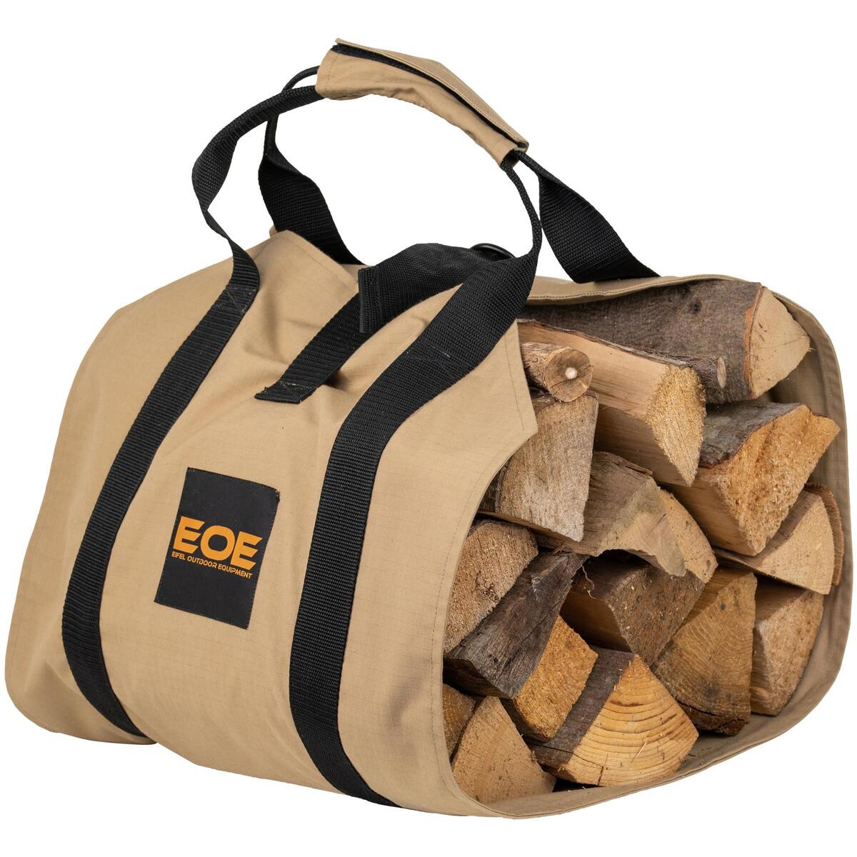 Tragetasche für Brennholz Ein Liebhaberstück und neu im Programm ist die robuste Holztäsch, die eine Menge Holzscheite für den Kamin oder gesammeltes Brennholz für eine Feuerstelle draußen in der Natur sicher transportieren kann. Das reißfeste Material aus technischer Baumwolle ist mit zwei schwarzen Gurten verstärkt und hat zwei stabile und angenehme Griffe. Nach dem Einlegen des Brennmaterials lässt sich das Tragesystem sicher mit der angebrachten Schnalle verschließen, damit beim Transport nichts…