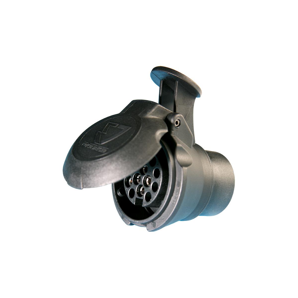 Minikurzadapter mit 7-pol. Stecker und 13-pol. Kupplung. Technische Daten: NormenISO 11446, ISO 1724 – Typ N von Fahrzeug (7P/12V) zu Anhänger (13P/12V) Spannung [in V]: 12 Besonderheit: mit Einsteckhilfe Gehäusefarbe: schwarz Gehäusematerial: verstärkter Kunststoff
