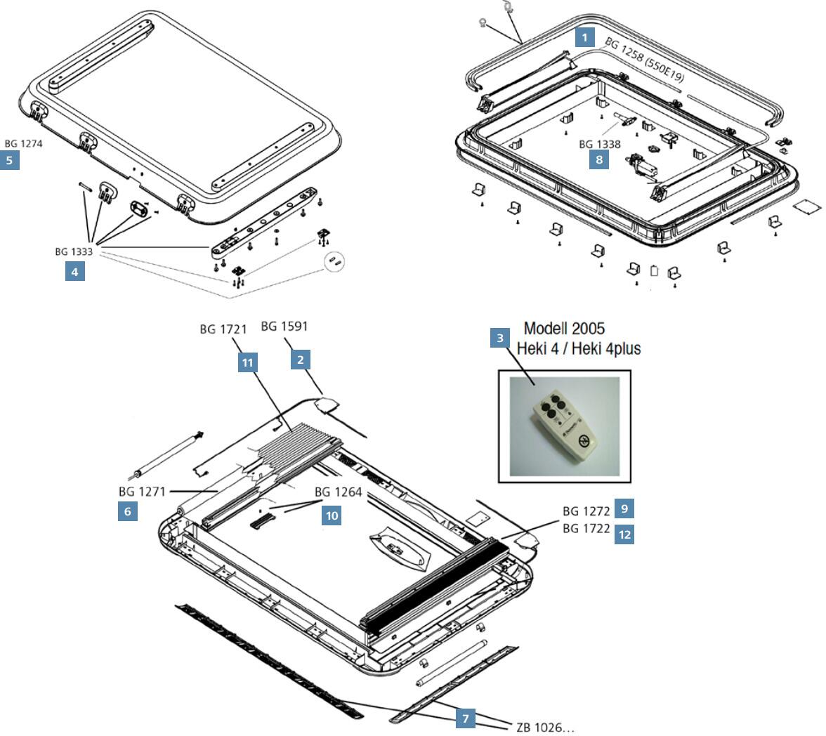 Ersatzglas mit Anbauteilen – Dometic Seitz Ersatzteil Nr. BG1333 – für Heki 4 / 4 plus