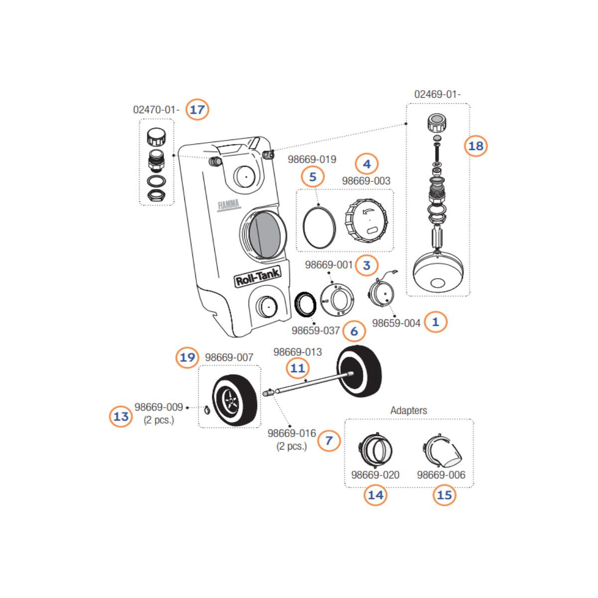 Ersatzgummirad für Roll-Tank 23/40 Liter Fiamma Ersatzteil-Nr.: 98669-007 Abbildung Nr.: 19