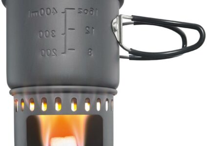 Wenn Gewicht eine Rolle spielt, ist dieses Kochset die richtige Wahl. Etwa 200g leicht, aus hart anodisiertem Aluminium und mit Esbit Trockenbrennstoff ganz einfach zu befeuern. Der Topf fasst ca. 585 ml, zum Lieferumfang gehören auch der Deckel sowie ein Stand, der sich platzsparend im Topf verstauen lässt. Der Topf hat eine Volumenanzeige in Oz und Liter, die Edelstahlgriffe sind platzsparend klappbar. Mit praktischem Netzbeutel. Unser historisches Trockenbrennstoff-Kochset mit Stand und Topf hat uns…