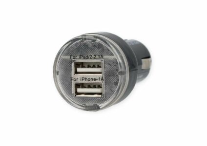 Zum Laden von Geräten mit USB-Anschlusswie Handys, Navigationssysteme, Headsets oder PDA. LED Funktionsanzeige 2 USB-Anschlüsse Automatisches Abschalten bei Kurzschluss und Überhitzung Ohne USB-Kabel Technische Daten: Eingangsspannung: 12/24 V Ausgangsspannung: 5 Volt,±5 % 1. USB: 2,1 A 2. USB: 1A