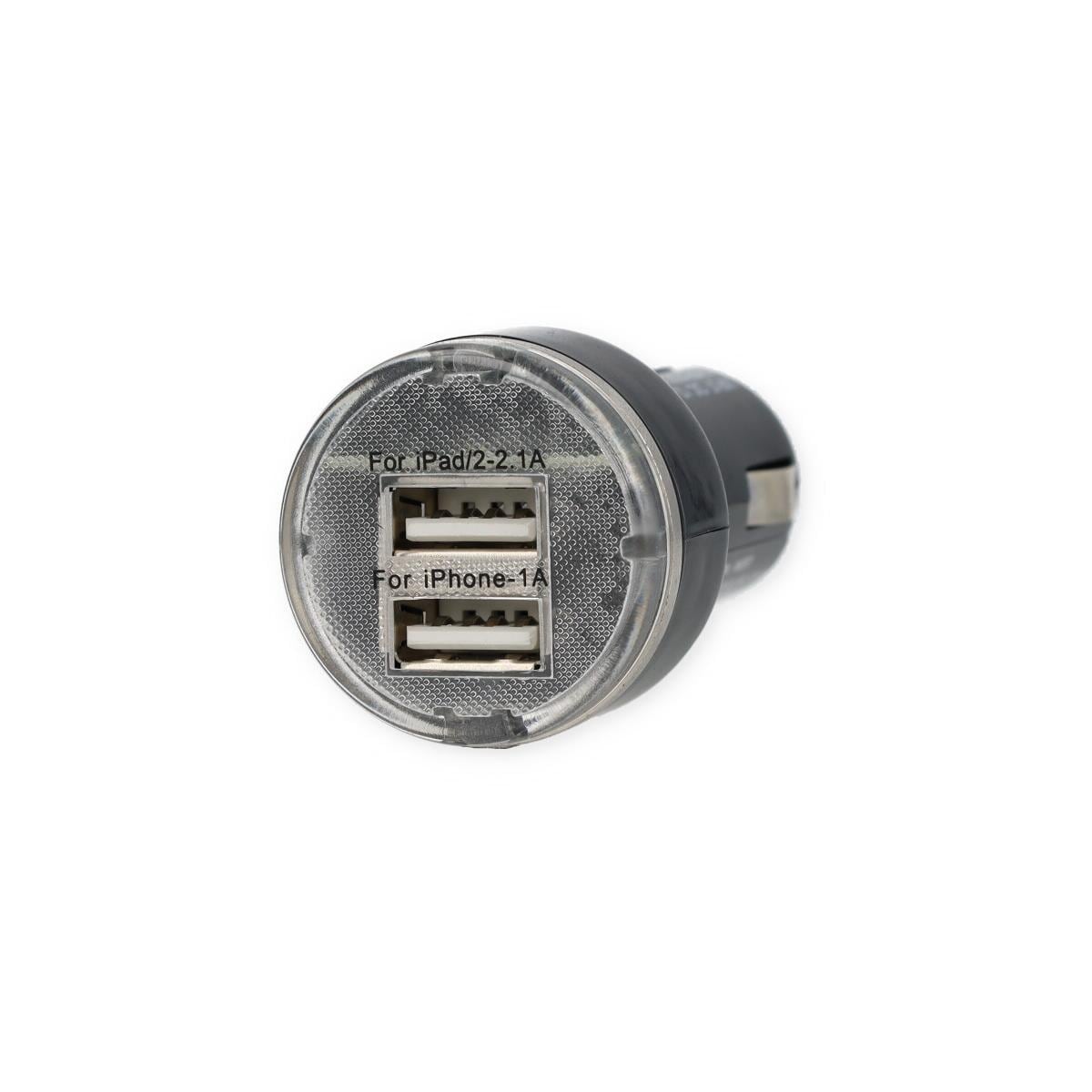 Zum Laden von Geräten mit USB-Anschlusswie Handys, Navigationssysteme, Headsets oder PDA. LED Funktionsanzeige 2 USB-Anschlüsse Automatisches Abschalten bei Kurzschluss und Überhitzung Ohne USB-Kabel Technische Daten: Eingangsspannung: 12/24 V Ausgangsspannung: 5 Volt,±5 % 1. USB: 2,1 A 2. USB: 1A