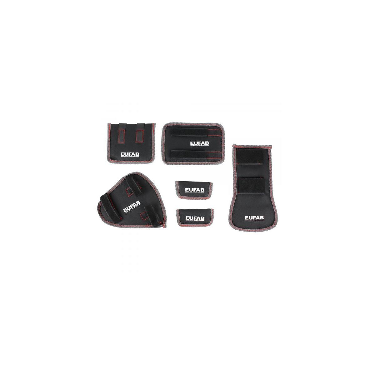 Schützt Ihr Fahrrad beim Transport auf einem Fahrradträger oder im Fahrzeug. Befestigung mit stabilen Klettverschlüssen. Robuste und abwaschbare Außenseite. Gepolsterte Innenseite. Mit praktischer Tasche zur Aufbewahrung. Obermaterial ist 100 % Polyester (Oxford 600D) mit PVC Coating. Technische Daten: Farbe: schwarz,rot Material Textil: 100 % PES Polyester Breite: 6 cm Höhe: 34 cm Tiefe: 18 cm Gewicht: 197 g Lieferumfang: 1 Aufbewahrungsbeutel 2 Felgenschoner 1 Kettenschoner 1 Rahmenschoner 1…