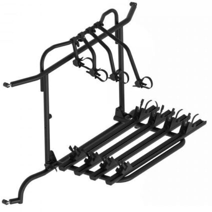 Kompett vormontierter Fahrradträger für 4 Fahrräder (E-bikes geeignet, max. 2 Stück) mit einem max. Gesamtgewicht 60 kg. Die Montage erfolgt ohne Bohren und Kleben an den bereits vorhandenen Bohrungen der Türscharniere. Dadurch kann der Träger innerhalb kürzester Zeit montiert werden. Zum Öffnen der Hecktüren kann der Fahrradträger im beladenen Zustand seitlich nach rechts weggeschwenkt werden. Die Beladehöhe mit der im Standard beinhalteten Beleuchtungsleiste beträgt ca. 98 cm. Der Grundrahmen besteht…
