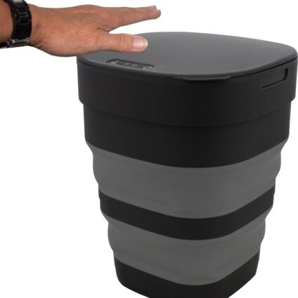 Praktischer faltbarer Abfallbehälter mit Infrarot-Bewegungssensor. Dadurch wird sichergestellt, dass sich der Eimer automatisch öffnet und nach 5 Sekunden wieder schließt, sobald Sie Ihre Hand 20 cm vom Eimer entfernt halten. Ideal zum Camping, Bootfahren oder sogar zu HauseTechnische Daten:Material: ABS, PP, TPRAbmessungen: 25 x 25 x 30,5 cm,Volumen: 8,5 LGefaltet: 25 x 25 x 11,5 cmBatterie: 2 AA-Batterien (nicht im Lieferumfang enthalten)Farbe: schwarz, grau