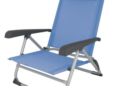 Komfortabler Strandstuhl mit verstellbarer Rückenlehne und breiten Armlehnen. Die Rückenlehne kann nach hinten geklappt werden. Ideal für den Einsatz am Strand oder auf dem Campingplatz. Technische Daten: Bezug: Textilene 70% PVC 30% PES Gestell: Aluminium Rundrohr Größe: 60 x 55 x 20/74 cm Packmaß: 77 x 56 x 21 cm Gewicht: 2,4 kg Max. Belastung: 100 kg Farbe: kobaltblau
