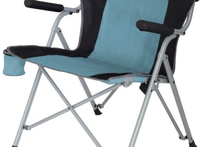 Der bequeme Faltstuhl mit seinen stabilen Armlehnen und breiter Sitzfläche lässt sich leicht auf- und zusammenklappen. Ein praktischer Getränkehalter, der eingeklappt werden kann, rundet die Bequemlichkeit ab. Material: 100% Polyester, Stahl Technische Daten: Maße (B x T x H): 64 x 64 x 91 cm Sitzhöhe: 45 cm Belastbar bis: 120 kg Packmaß (B x T x H): ø 20 x 107 cm Gewicht: 5,2 kg Farbe: blau, schwarz Lieferumfang: Stuhl inkl. Tragetasche