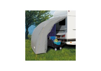 Neues Lagerzelt XL zur Befestigung an der Hinterseite des Wohnwagens. Ausgestattet ist das Zelt mit einer Schnur, die in das Profil an der Rückseite des Wohnwagens über dem Fenster passt, 2 Bugstangen und diversen Spannpunkten. Das Zelt hat einen sehr geräumigen Innenraum und bietet ausreichend Stauraum für Fahrräder, Campingmöbel oder andere Campingausrüstung. Der ideale Platz, um die Sachen vor Regen und Schmutz zu schützen! Einfach und schnell aufzubauen. Technische Daten: Größe (LxBxH): 190 x 170 x…