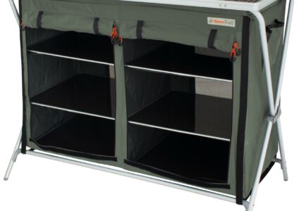 Bei diesen Vorratsschränken haben Sie die Wahl – es gibt sie in 2 zeitgemäßen Pastelltönen und 2 Größen. Die schwarzen Haltebänder, die zur Fixierung des Schrankkörpers am Aluminiumgestell dienen, bilden einen optisch attraktiven Farbkontrast zum hellen Außenmaterial in das rückseitig Fliegengaze zur Belüftung eingearbeitet wurde. Die Schränke zeichnen sich durch eine stabile Arbeitsplatte und aluminiumverstärkte Regalböden aus, die Standfüße sind höhenverstellbar. Lieferung inklusive Tragetasche. Mit 6…