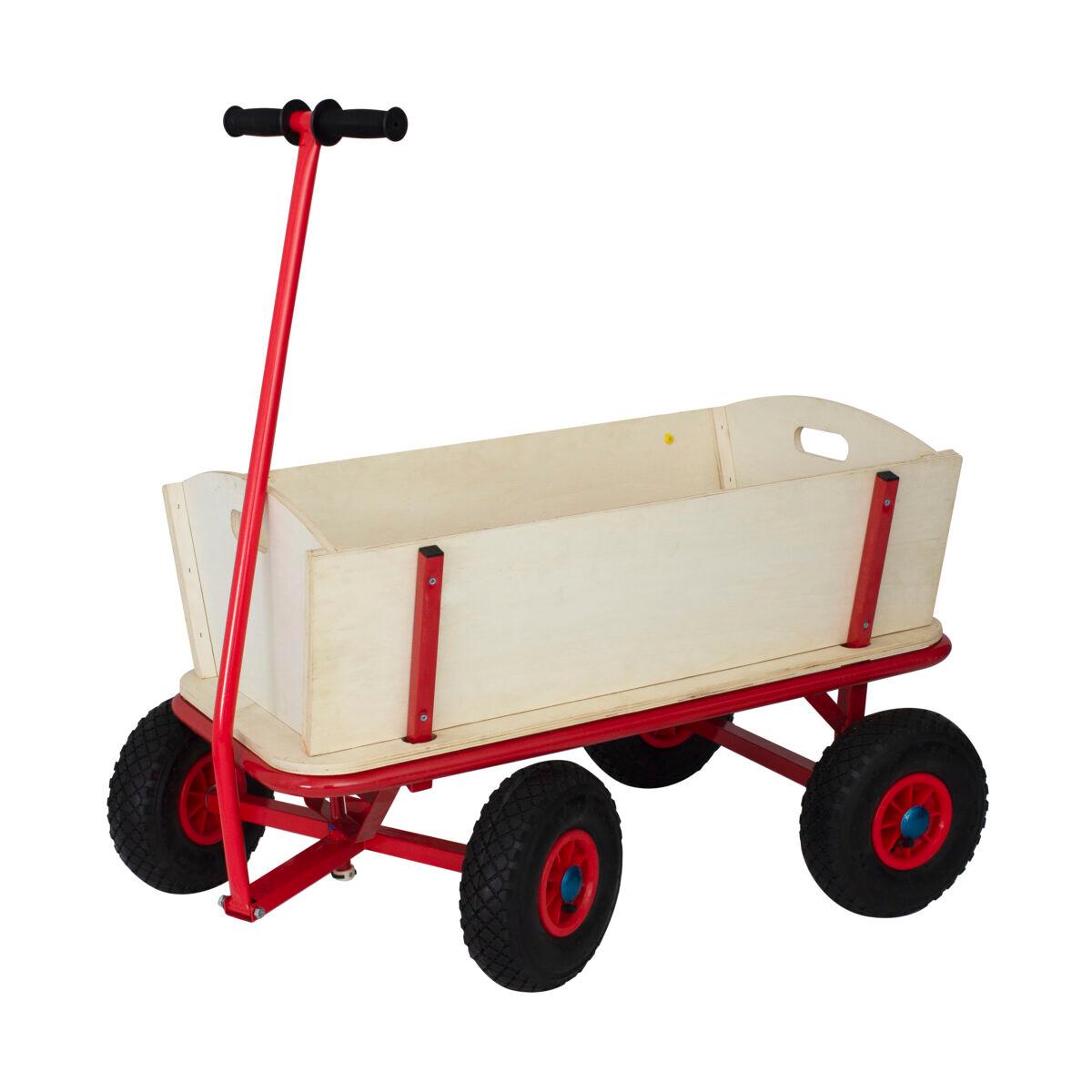 Vielseitiger, kompakter Transporthelfer mit einer maximalen Tragkraft von 100 kg für Freizeit, Sport, Haus und Garten. Robuster, steckbarer Holzaufbau lässt sich ohne viel Aufwand zerlegen und benötigt bei Nichtgebrauch nur wenig Platz im Kofferraum oder beim Aufbewahren. Die großeluftbereiften Räder (ø 24 cm) sorgen für hohen Fahrkomfort. vielseitig kompakt hoher Fahrkomfort Technische Daten: Material: Holz Gestell: Stahl Große: 95 x 61 x 59 cm Packmaß: 92 x 44 x 22 cm Gewicht: 17 kg Max. Belastung:…