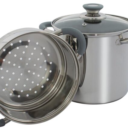 Pfanne mit Dampfgarer/Sieb. Mit dem Dampfgarer/Sieb können Sie problemlos Gemüse, Muscheln oder Fisch dämpfen. Die Pfanne kann auch ohne Dampfgarer verwendet werden, hat einen Kapselboden und ist daher für alle Wärmequellen geeignet. induktions geeignet mit Dampfgarer/Sieb Technische Daten: Modell: Corby Farbe: silber Material: Edelstahl Im Set enthalten: Ø 18x17cm, 3.9 l Ø 18x8cm Dampfgarer/Sieb