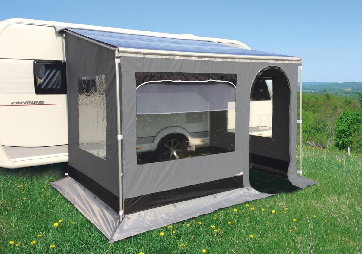 Mit dem Bergen Canopy Room wird die Markise (Caravanstore) in einen gemütlichen Wohnraum verwandelt. Die Markise hat eine einfache Befestigung mittels Keder, die Seitenwände werden an die im Lieferumfang einbegriffenen Rafterstange montiert und mittels Reißverschlüssen mit den Vorderwand verbunden. Damit entsteht ein großer Platz ideal für Tische und Stühle. Natürlich kann auch nur eine Seitenwand montiert werden, diese sorgt auch für einen Schutrz gegen Wind und Sonne. große Fenster mit Moskitonetzen…