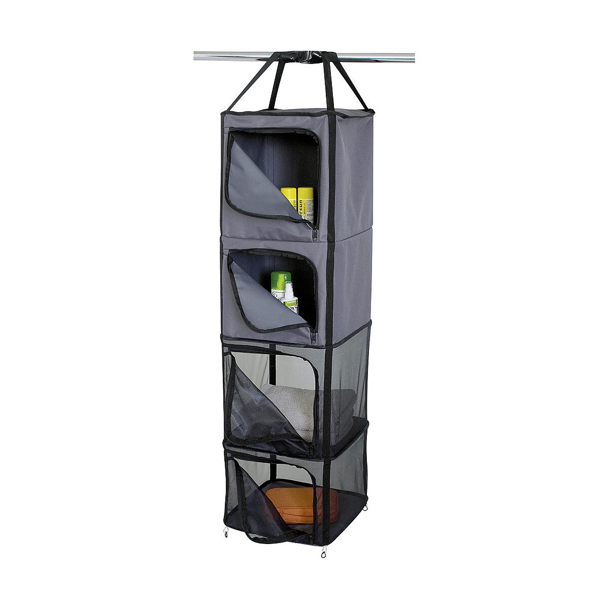 Hängeschrank mit vier stabilen, herausnehmbaren Einlegeböden und Aufhängung. Technische Daten: Material: 100 % Polyester Abmessungen: B 33 x H 110 x T 31 cm Farbe: anthrazit
