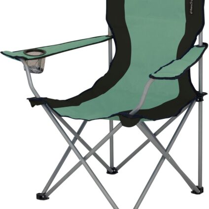 Der praktische wie auch bequeme Faltstuhl mit Polyeter Bezug und stabiles Stahlrorhgestell ist ein Tip für Budget Camper. Becherhalter in der Armlehne. Technische Daten: Bezug: 100% Polyester Gestell: Stahlrundrohr Größe: 53 x 43 x 40/80 cm Packmass: 80 x 13 cm Gewicht: 3,1 kg Max. Belastung: 100 kg Farbe: meeresgrün