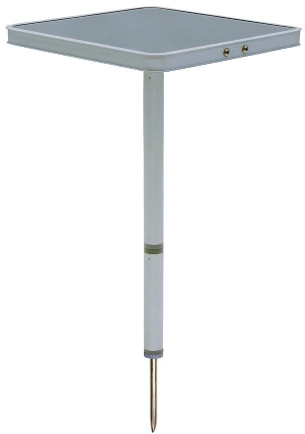 Praktischer Aluminiumtisch, mit abschraubbarem Erdspieß und in drei Höhen verwendbar. Durch Einsetzen oder Herausnehmen der einzelnen Stäbe können Sie den Tisch in seiner Höhe variieren. Höhen: 15, 25, 40 cm Maße: 26 x 26 cm Packmaß: 26 x 26 x 6 cm Gewicht: 0,5 kg Belastbar bis: 5 kg Material Gestell: Alu-Rundrohr