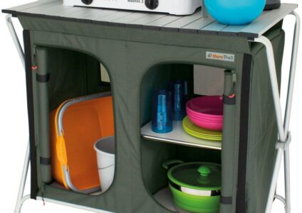 Küchentisch Mayet Großer faltbarer Küchentisch mit Fliegengaze zur Entlüftung. Die Alu-Arbeitsplatte ist rollbar. 1 Fach mit 2 Ablageböden und 1 Fach für lagnung Flaschenkiste. Verstellbare Beinen, inklusive Windschutz und Aufbewahrungstasche. Technische Daten: Größe: 88x50x80 / 104cm Gefaltet in: 92x50x11cm Material: 100% Polyester Rahmen: Aluminium Top Platte: Aluminium Windschutzscheibe: Stahlblech Max Belastung: 25 kg Gewicht: 7,5 kg