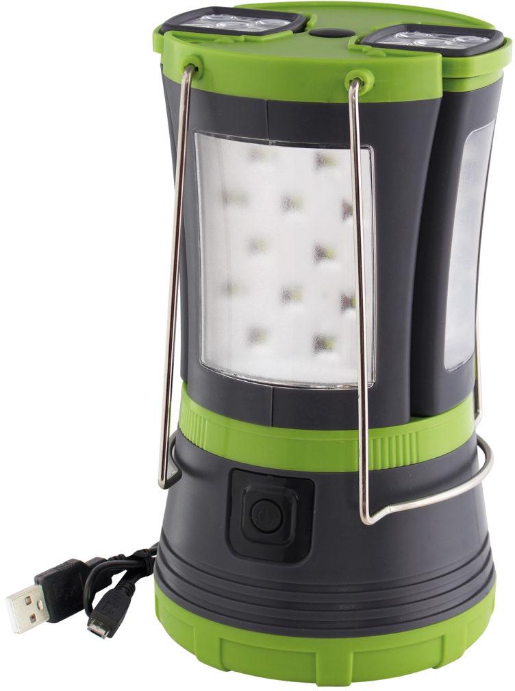 Multifunktionale, wiederaufladbare Campinglampe. Die Lampe hat 2 Helligkeitsstufen und 2 abnehmbare Taschenlampen. Die Basis kann mit Batterien oder mit wiederaufladbarem Akku (im Lieferumfang enthalten) verwendet werden, die Taschenleuchten werden mit AAA-Batterienbetrieben. 2 Helligkeitsstufen 2 abnehmbare Taschenlampen Batterien sind nicht im Lieferumfang enthalten. Technische Daten: 58 LEDs Lichtstrom: 500 lm Abmessungen: 20,5 x ø 11,6 cm Farbe: grau, grün