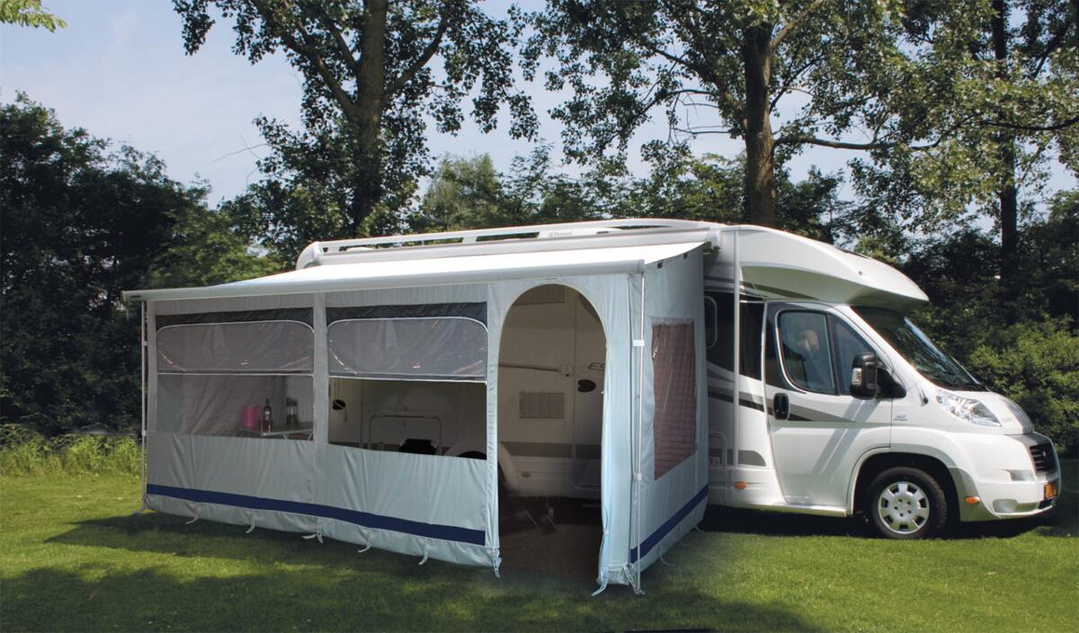 Die Vorderwand wird mit einem Keder an der Markise befestigt. Die Seitenwände haben oben einen Hohlsaum, durch den die Rafterstangen (nicht im Lieferumfang enthalten) geschoben werden. Die Verbindung mit den Seitenwänden erfolgt mittels Reißverschlüssen an der Vorderwand. Klettverschlüsse sorgen an den Beinen der Markise für sicheren Halt. Das Eurotrail Narvik 400 überzeugt mit großen verdunkelbaren Fenstern mit Moskitonetzen und einer Rundbogentüre als Eingang. Moskitogaze Rundbogentür UV-beständig…
