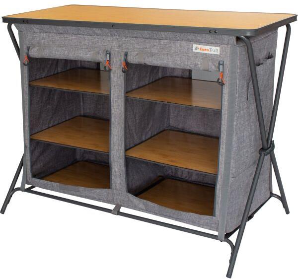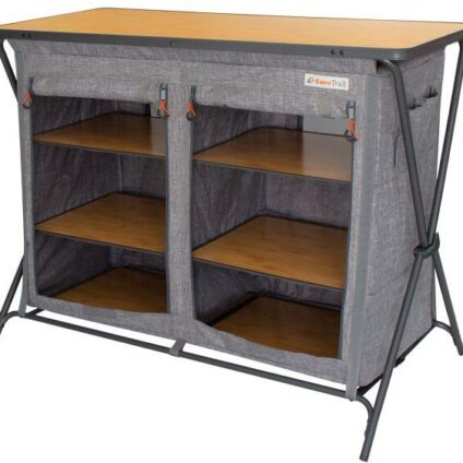 Doppelter Campingschrank, schnell aufgebaut und mit viel Stauraum. Der Forano ist ein breites Modell, die 6 geräumigen Regale bieten viel Platz, um alle Ihre Küchenutensilien oder Kleidung zu verstauen. Der Schrank besteht aus Polyester und wird mit einer Deckplatte und stabilen Einlegeböden aus Bambus geliefert. Verstellbare Beine, um den Schrank in eine stabile Position zu bringen. Inkl. Aufbewahrungstasche. stabiler Aluminiumrahmen verstellbare Füße für einen sicheren Stand viel Stauraum stabile…