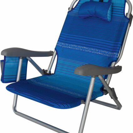 Dieser Strandkorb besteht aus recyceltem Polyestermaterial und alle Kunststoffteile sind ebenfalls aus recyceltem Material. Bequemer Strandkorb mit Liegeposition. Das verstellbare Rückenteil (5-fach) lässt sich ganz nach hinten verschieben, so dass eine Art Liege entsteht. Der Sitz hat eine angenehme Größe von 49 x 44 cm und ist bodennah (23 cm). mit einem großen Staufach mit Reißverschluss auf der Rückseite praktische Seitentasche Kissen Schultergurte für den einfachen Transport Technische Daten:…