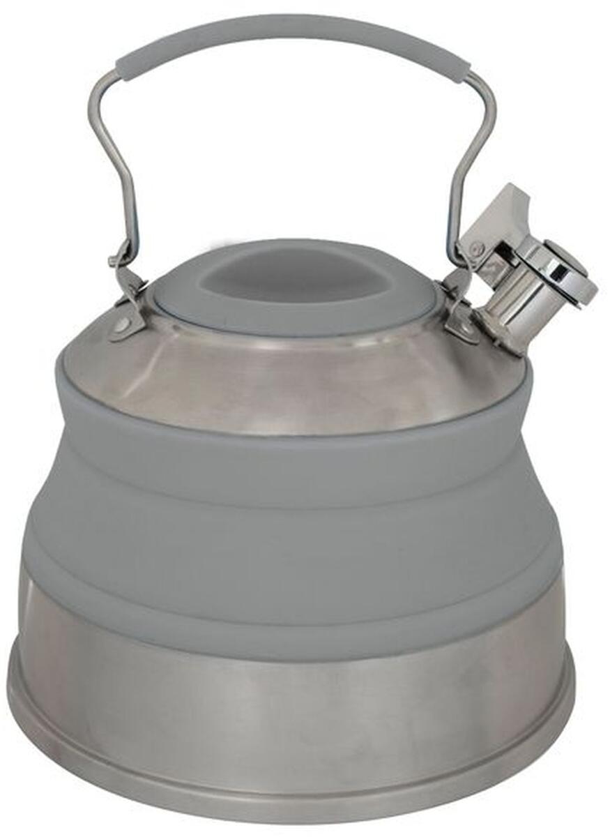 Zusammenklappbarer PfeifkesselProdukt Daten:Faltbarer Wasserkocher mit Pfeife,Ideal für Camping und Reisen.Kompakt und handlich.Für Gasbetrieb geeignet, kocht Wasser schnell.Pfeife signalisiert Kochpunkt.Technische Daten:Material: Edelstahl 430, SilikonInhalt: 2LAbmessungen: ø 18,4 x 9-15 cmGewicht: 560g