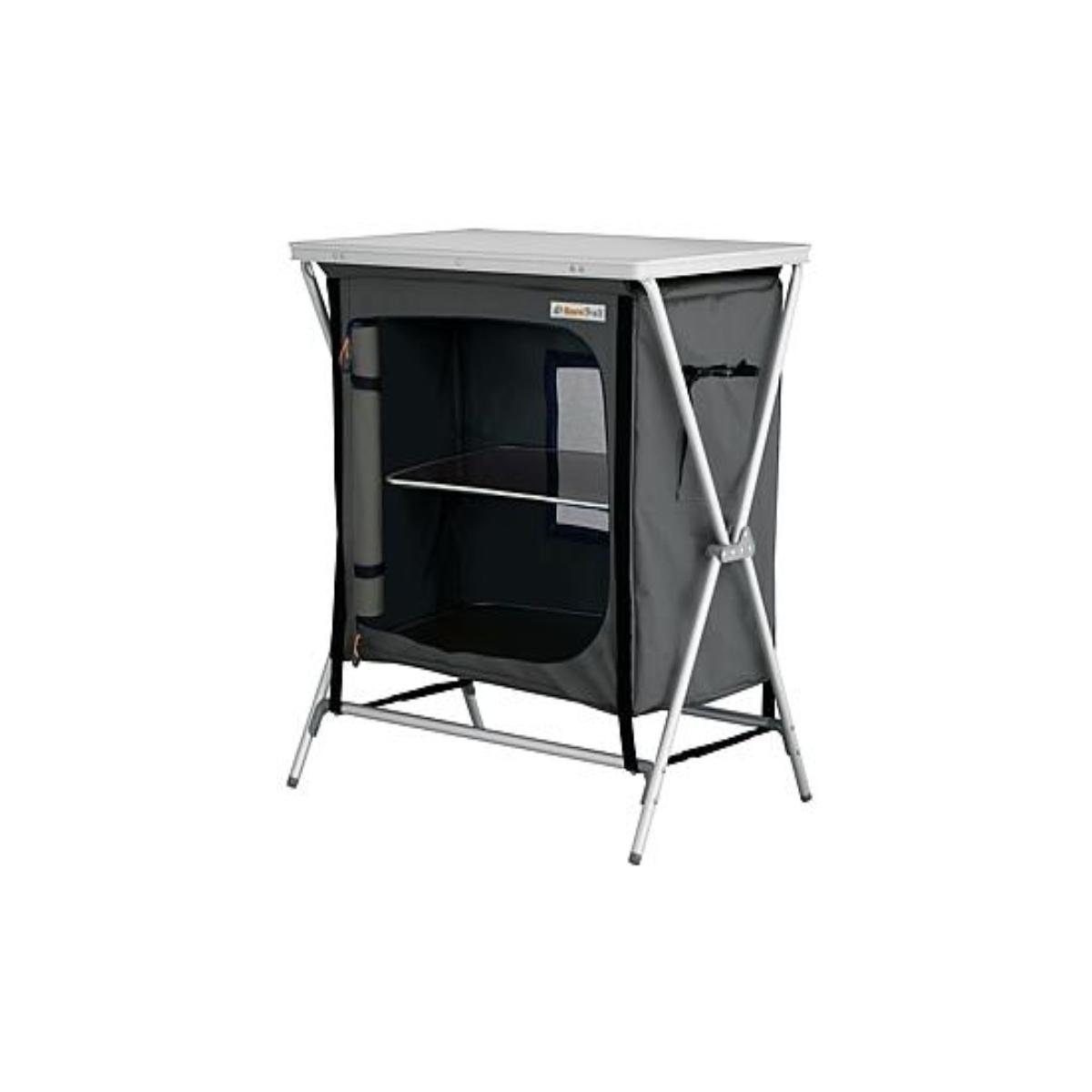 Kompakter Vorrats- und Aufbewahrungschrank. Mit dem Cross-Faltgestell einfach aufzubauen oder auseiander zu klappen. 2 Innenböden mit Alu-Randverstärkung. Eingearbeitete Lüftungsgitter an der hinteren Seite, Füsse sind einzeln einstellbar um Unebenheiten im Boden auszugleichen. Im Lieferumfang ist eine Tragetasche. 2 Innenböden Lüftungsgitter hinten Füße höhenverstellbar inkl. Tragetasche Technische Daten: Maße (B x T x H): 72 x 50 x 82 cm Packmaß (B x T x H): 72 x 10,5 x 50 cm Material: 100% Polyester…