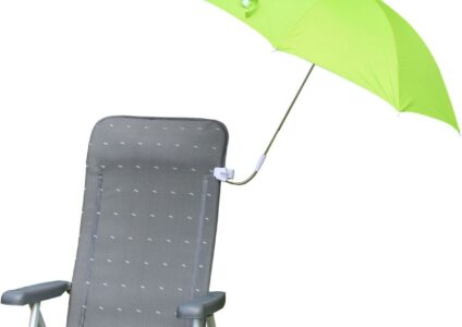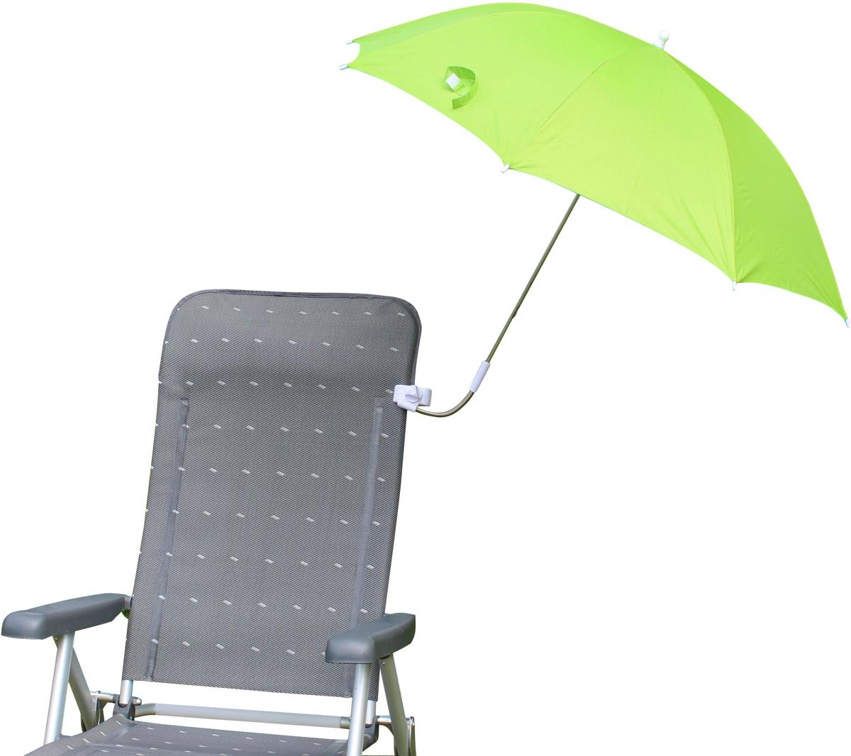 Mit Klemmvorrichtung für Stühle oder Kinderwagen. Bespannung aus 100 % Polyester mit Alu-Beschichtung und Sonnenschutz UPF 50+. einfache Montage passend für die meiste Stühle oder Kinderwagen Technische Daten: Schirmdurchmesser: Ø 114/104 cm Schirmlänge 85 cm Packmaß: 89 x Ø 4 cm Material: 100% Polyester mit Alu Beschichtung UPF 50+ Frame: 8mm Stahlrohr mit Klemmvorrichtung. Farbe: grün