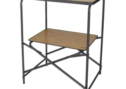 Praktischer klappbarer Küchentisch. Robust und stabil, einfach und schnell aufzubauen und ideal für unterwegs. Der anthrazitfarbene Klapprahmen in Kombination mit der Oberseite und dem Boden in Bambusoptik verleihen dem Schrank ein luxuriöses Aussehen. klappbar robust und stabil Technische Daten: Material: MDF/ Aluminium Rahmen: Ø 14 mm Maße: 80 x 64 x 44 cm Gefaltet: 78 x 48 x 8 cm Gewicht: 2,8 kg