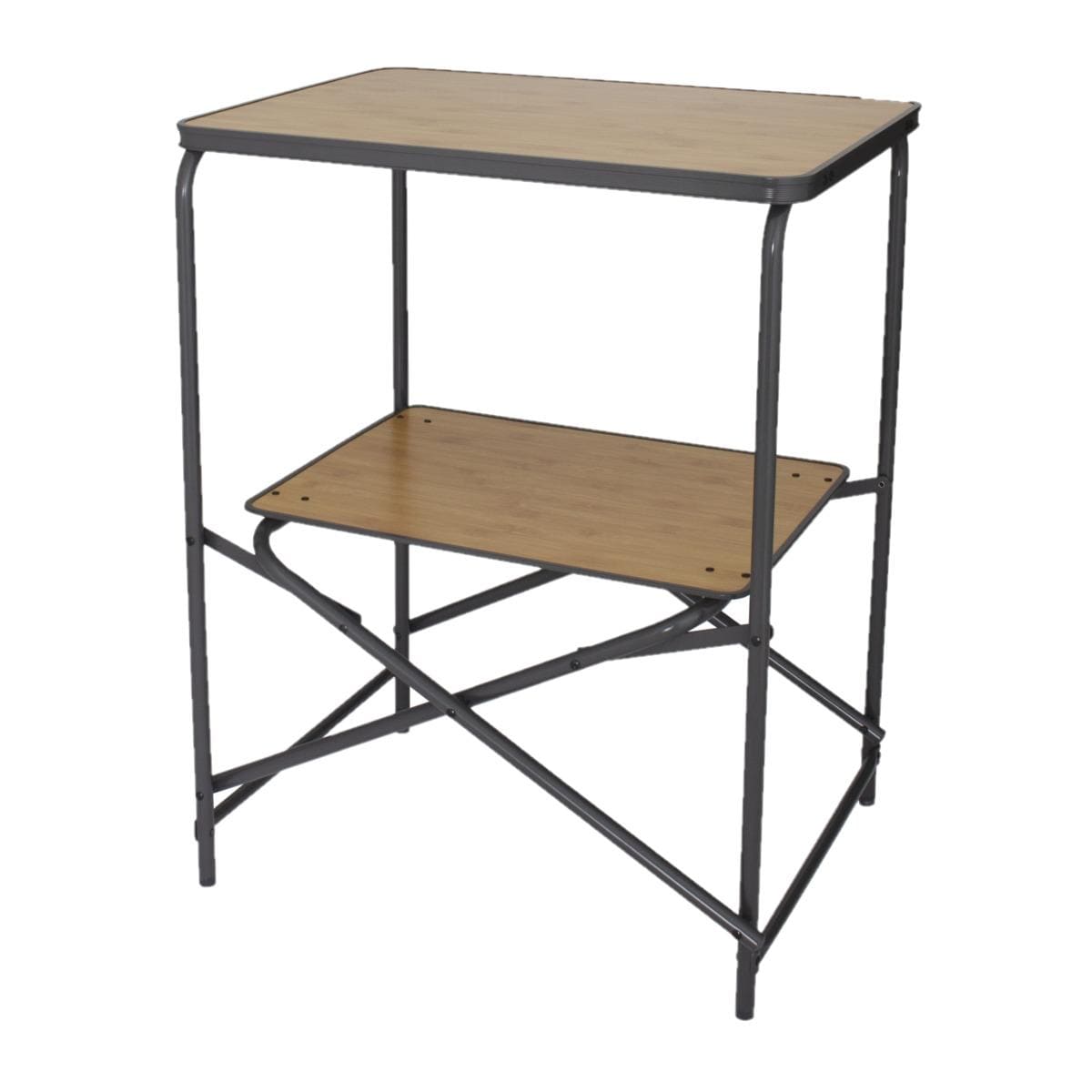 Praktischer klappbarer Küchentisch. Robust und stabil, einfach und schnell aufzubauen und ideal für unterwegs. Der anthrazitfarbene Klapprahmen in Kombination mit der Oberseite und dem Boden in Bambusoptik verleihen dem Schrank ein luxuriöses Aussehen. klappbar robust und stabil Technische Daten: Material: MDF/ Aluminium Rahmen: Ø 14 mm Maße: 80 x 64 x 44 cm Gefaltet: 78 x 48 x 8 cm Gewicht: 2,8 kg