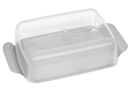 Die klassische Butterdose von Fackelmann ist im Kühlschrank unverzichtbar! Der Edelstahl-Boden bietet großzügig Platz für eine 250g-Butterpackung und verfügt über zwei praktische Halterungen für das sichere Herausnehmen aus dem Kühlschrank. Der hohe transparente Deckel umschließt den Boden und sorgt dafür, dass die Butter Frische und Geschmack behält. Bei Bedarf kann die Dose (ca. 16,5 x 10,5 cm) zur Reinigung in die Spülmaschine gegeben werden. stylishe Butterdose zum Frischhalten & Aufbewahren von…